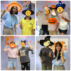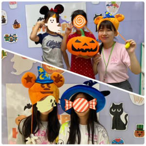 魔女やかぼちゃなど仮装グッズを身に着けて